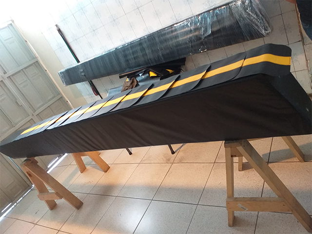Fabricado con cabezal sólido de hule espuma de 12" de altura estándar, lo cual genera la máxima eficiencia en el sellado, es ideal para bodegas que manejan temperaturas controladas, por las características del cabezal es apto únicamente para andenes que reciben camiones y camionetas con cajas del mismo tamaño